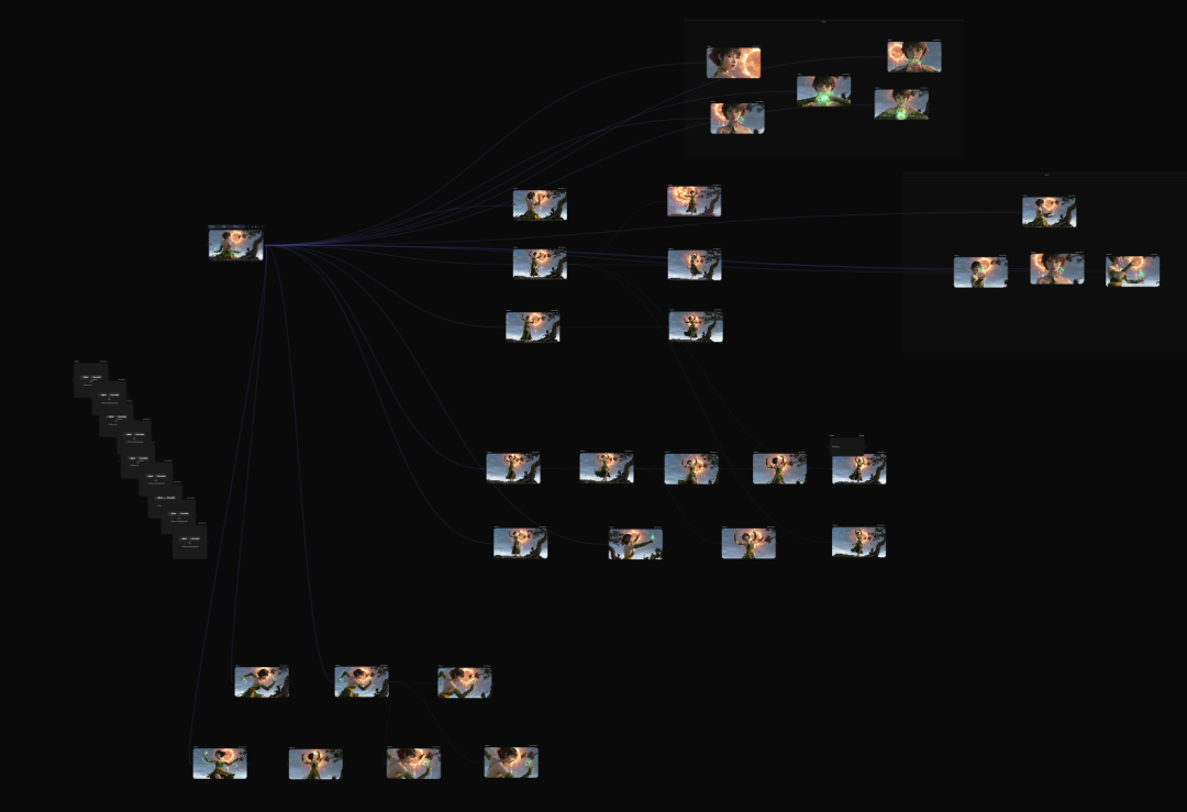 我们内部的工具打通了与各个模型的合作,可以直接用一张图作为一个节点,同开所有AI大模型,每个分镜都能打一个组来排列每个跟进的镜头,甚至可以一个网页同时跑200个视频。