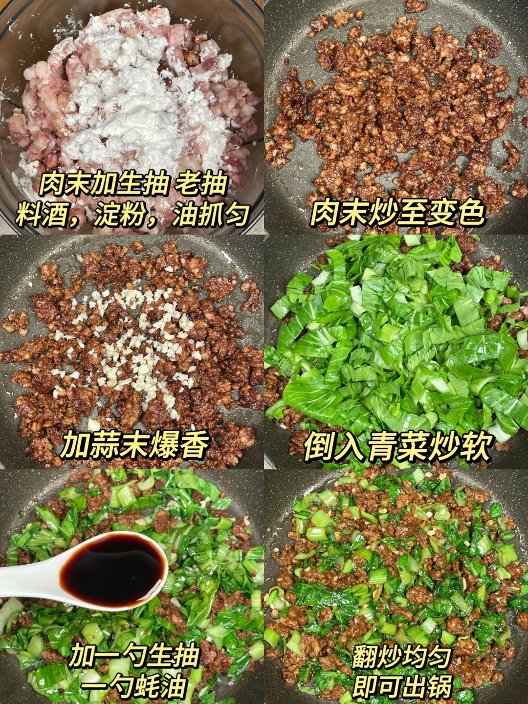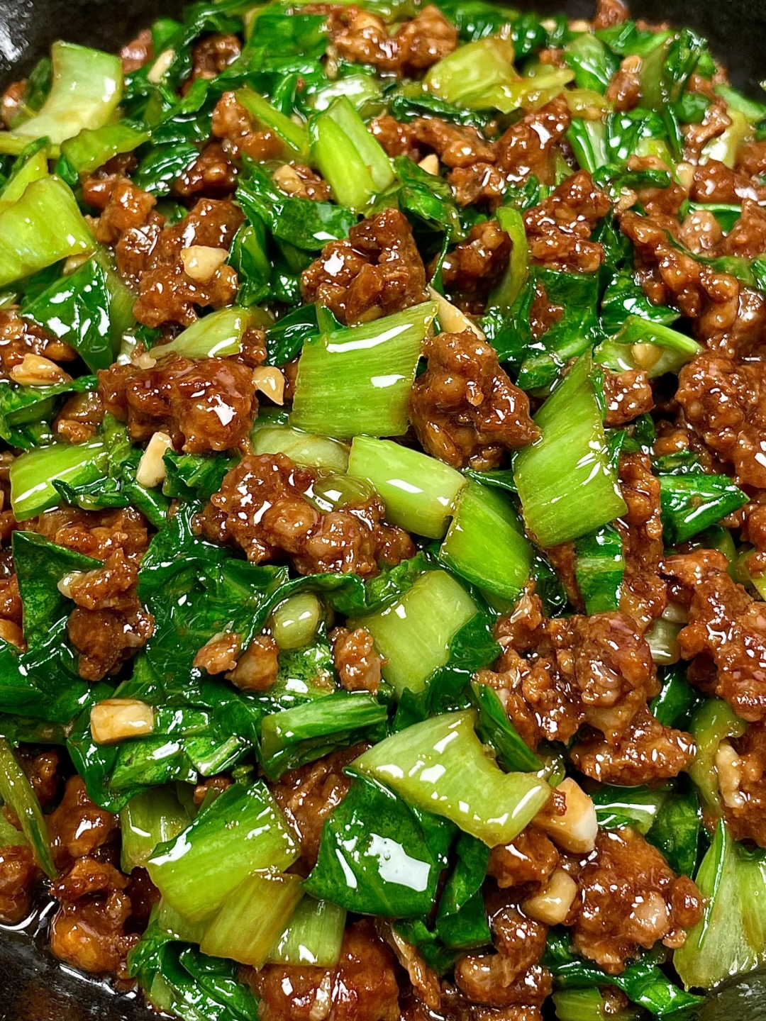 先说说食材准备,其实超简单!肥瘦相间的肉末150克(三肥七瘦最完美,油香足还不腻),小白菜300克(选叶子翠绿、茎部白净的,蔫了吧唧的会影响口感),大蒜5瓣(灵魂配角,一定要多!),再加上淀粉1小勺、生抽2勺、老抽半勺、料酒1勺、蚝油1勺这些厨房常备四件套就够了。这里有个避坑指南:千万别买纯瘦的肉末!炒出来柴得像在嚼树皮。我试过用梅花肉自己剁,口感更弹牙,但超市现成的五花肉末也够用,记得让老板再添勺肥肉丁,那焦香感立马升级。