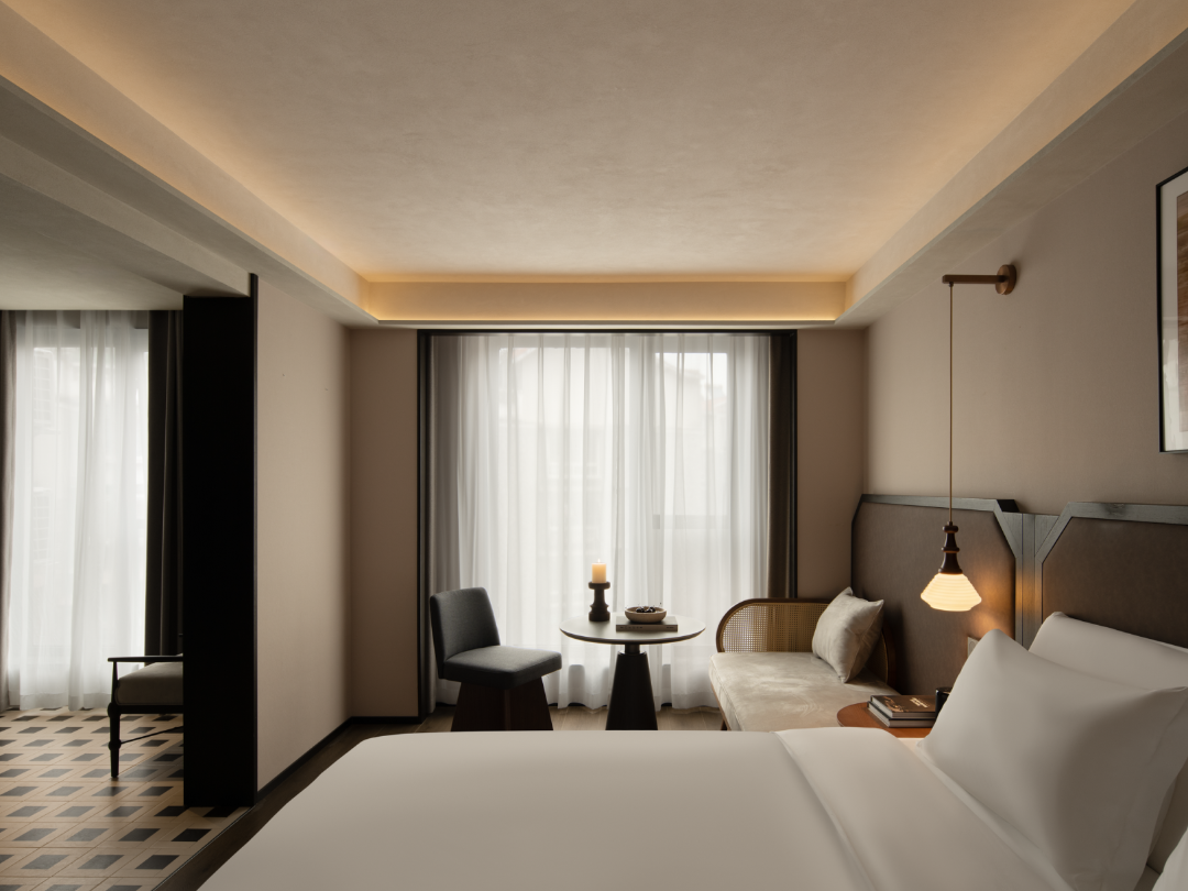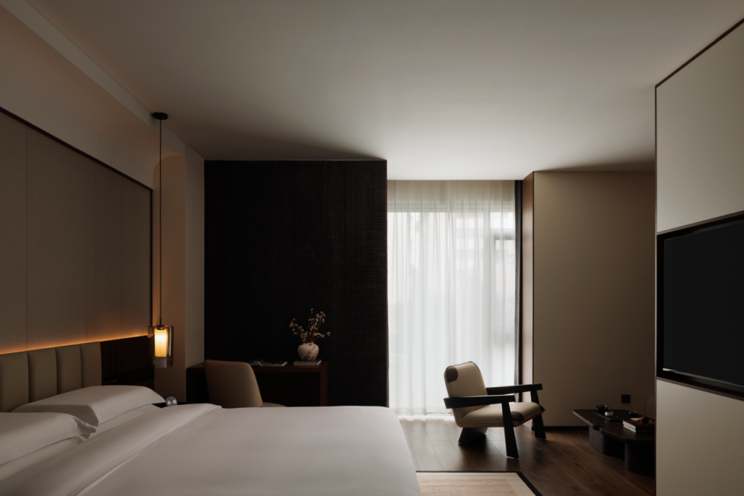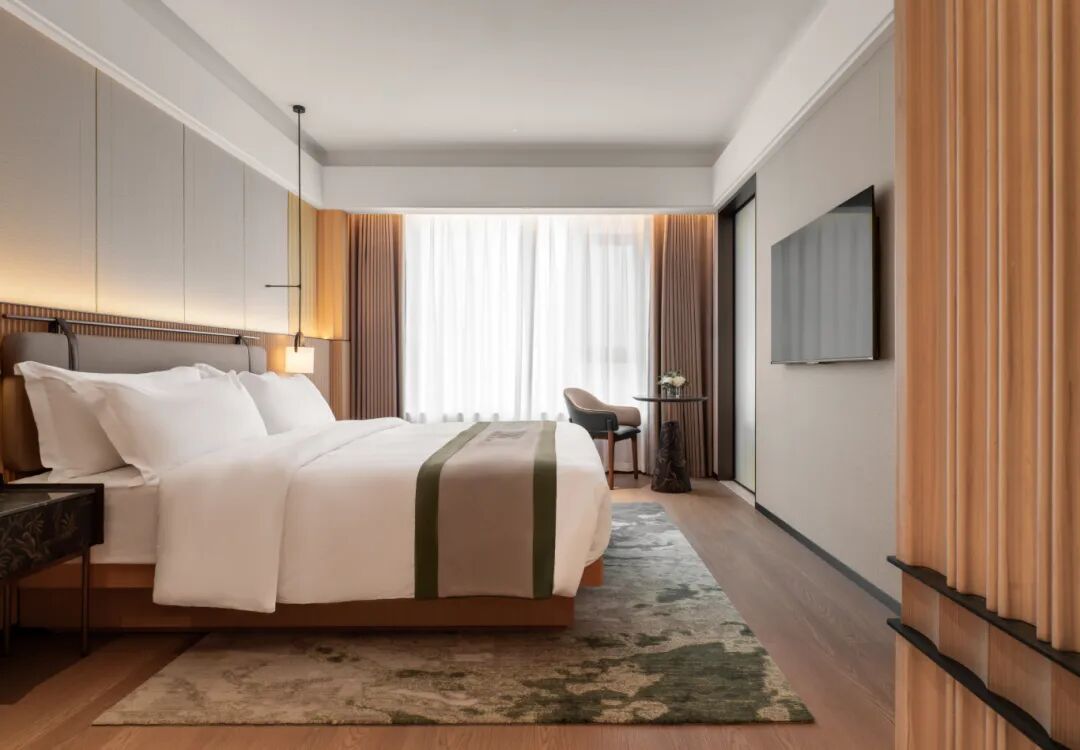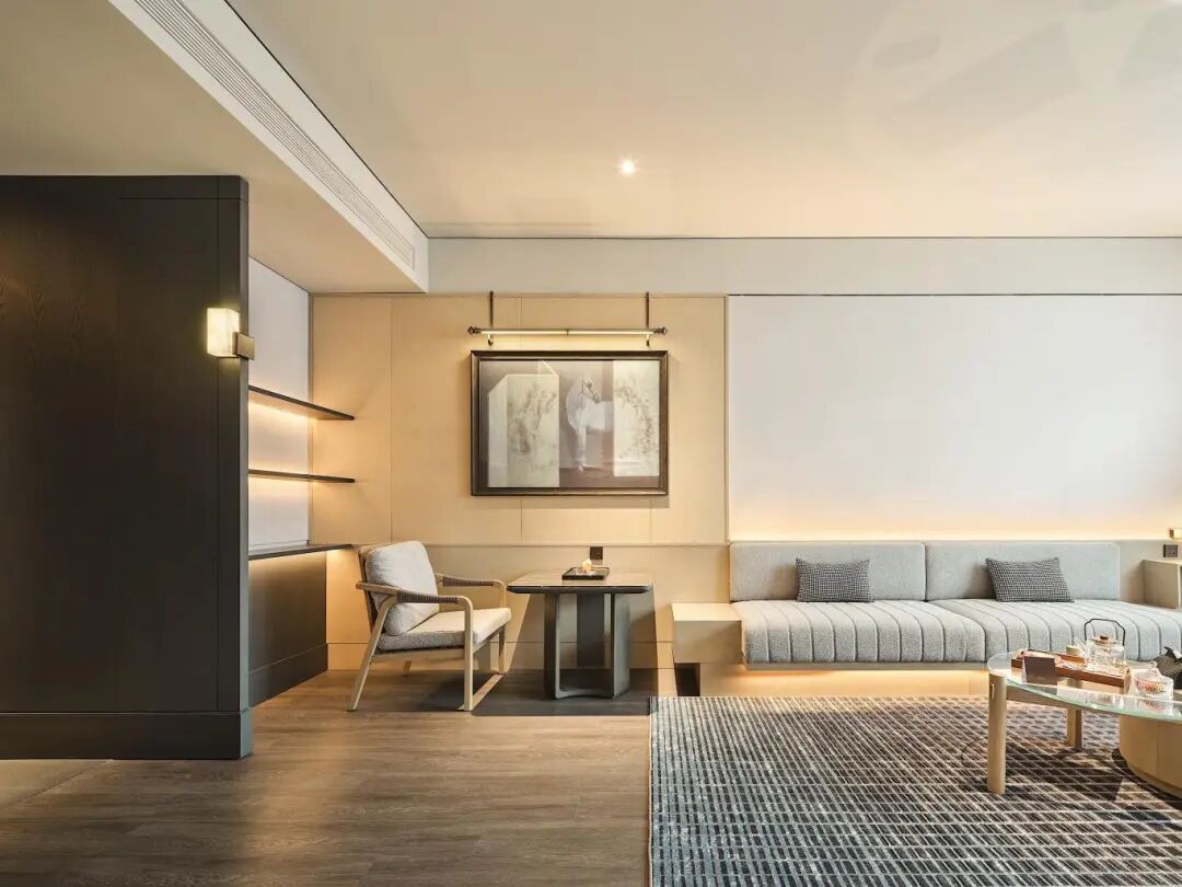酒店由知名设计师倾力打造,以“法式优雅”为空间底色,揉入现代智能科技,拒绝千篇一律的酒店模板:整体空间弥漫着法式慵懒质感,柔缓的线条、温润的色调搭配精致软装,瞬间消解城市奔波的疲惫,营造出 “在家般松弛,却更具格调” 的旅居氛围。