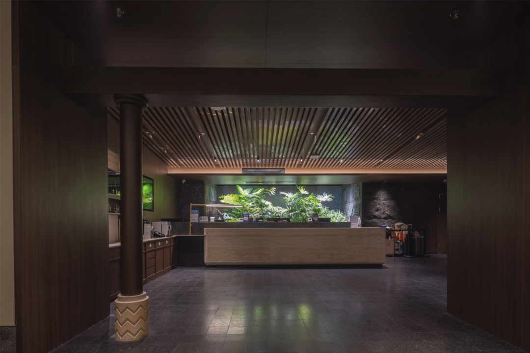 三时城印酒店(重庆解放碑步行街店)秉持“城森共生”理念,由生态景观和室内跨界融合设计而来,大厅15米森林长廊的呼吸长度,灰青色的石板蜿蜒,这方天地的设计,皆因「重庆城」的脉络。