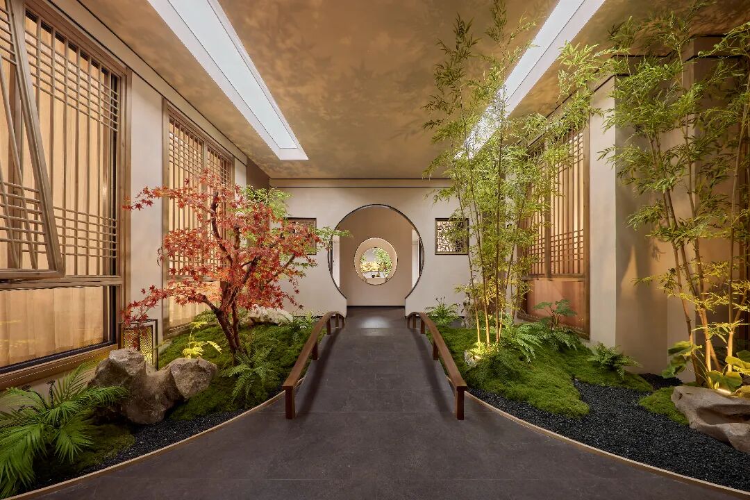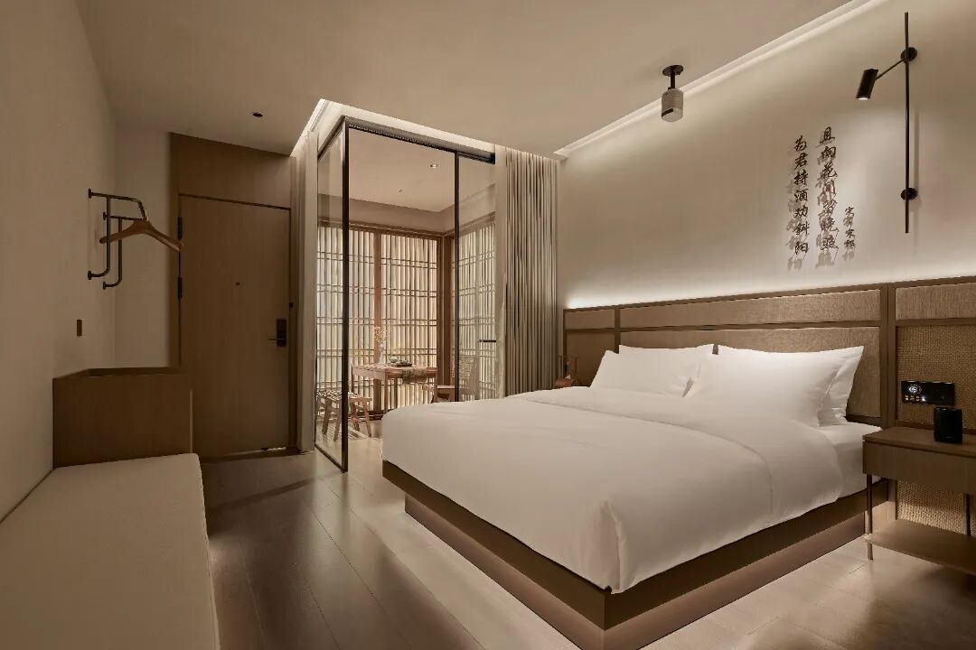 酒店分前厅中庭后院,一步一景,借景穿景叠景等设计还原园林庭院雅风。为顾客独特的体验和抚慰人心而努力,希望提供高性价比有品质价更优的客房。酒店全屋智能,也可体验琴棋书画 ,品茗赏画喂鱼,力求让客人获得松弛感,感受中式文化,静下心、深睡眠。