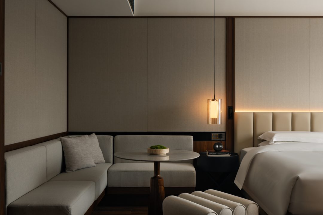 在太原LiuLiu酒店的改造里,思瀚设计把“吉祥文化”揉进自然肌理,让每一寸空间都带着“被在乎”的温度 —— 不是堆砌符号,是让客人推门进来时,会下意识放慢脚步,说一句“原来这里这么舒服”。当“好运”不再是红绸金饰的热闹堆砌,“疗愈”也不是远离尘嚣的清冷逃避 —— 湖北思瀚设计为太原LiuLiu酒店勾勒的,是一场“吉祥文化”与“自然疗愈”的温柔相拥。