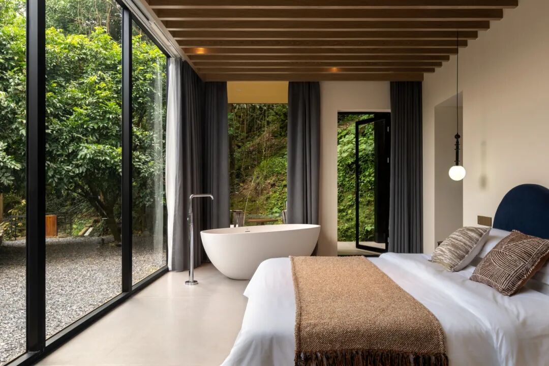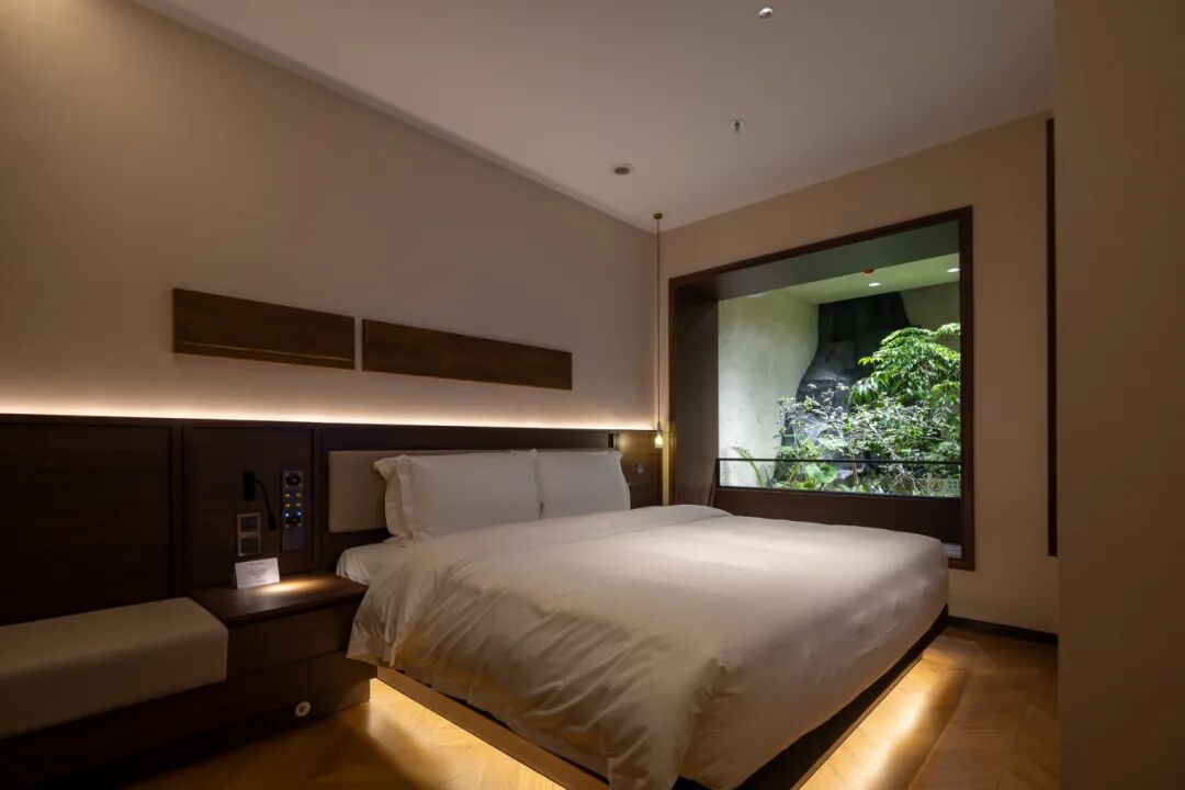 将森林搬进城心,酒店空间成了初逢自然与人文的会客厅,20余种热带植物错落生长,负氧离子织就天然氧吧。特色房型以“森境与需求共生”为核,为不同旅途场景量身定制,每一间都藏着“城心森居”的独特注解。