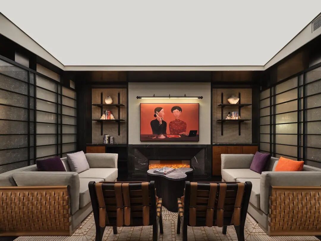酒店空间打破传统布局,创新采用多业态融合模式,大堂集合前厅接待、咖啡厅、茶吧、酒吧及共享办公功能,形成充满活力的社交场域。配套设施涵盖早餐厅、游戏室、会议室、茶室、健身房、洗衣房等完整体系,致力于打造超越住宿的复合型体验空间,既满足商务出行的效率需求,又提供符合年轻人喜好的社交场景。