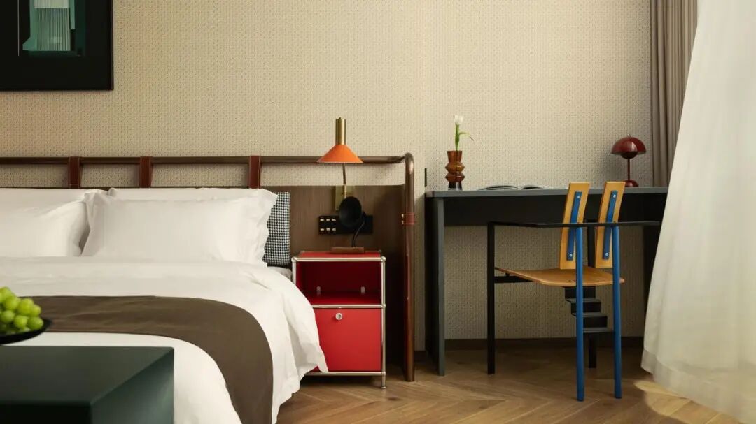 里安·设计师酒店延续包豪斯 “功能决定形式” 原则,客房以实用主义为基底,人字拼木地板的几何秩序、金属床架的工业质感,呼应包豪斯对材质本真的追求;千鸟格墙布、皮质软包则注入复古温情,平衡理性与感性。智能场景面板集成功能,让休憩、办公等场景无缝切换,践行包豪斯 “为生活服务” 的设计观。