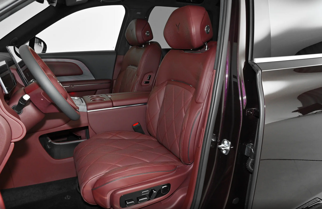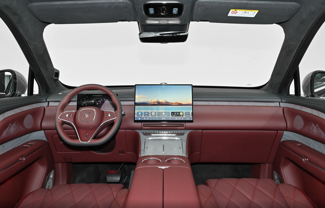 岚图泰山的外观通过大面积银色元素点缀,营造出不错的豪华感,22英寸的饼轮轮毂配合悬浮式滚轮,无论车轮如何转动,logo始终保持静态。此外,该款车的门把手还融入呼吸闪烁的星光灯予以修饰,细节感十足。来到岚图泰山的尾部,贯穿式后尾灯将尾部一分为二,进一步强化尾部整体感。新车提供丰富的车身配色,除了传统的黑、白、灰之外,还有个性化十足的金、蓝和紫等配色,以便不同审美消费者选择。该款车的后备厢常规容积为305L,日常购物能轻松放下,如果多人出行,更建议将后排座椅放倒来拓展后备厢空间,1193L的容积基本满足外出游玩储物需求,搬运小型家电也没什么问题。