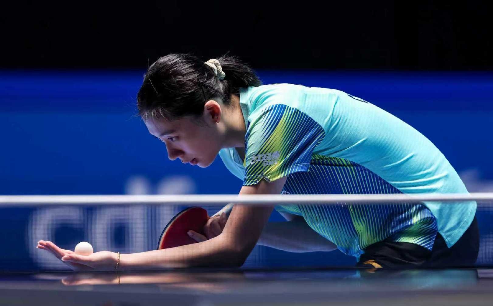 王楚钦三比一击败台北选手冯翊新,他前两局分别11比7和11比4取胜。冯翊新增加搏杀进攻,在第三局一开始就取得六比四的领先,之后始终保持进攻压制,8比5领先,最终11比8扳回一局。王楚钦持续保持正手发球抢攻的进攻专注度,不跟对方拼反手,11比7拿下了第四局,完全控制了比赛节奏。