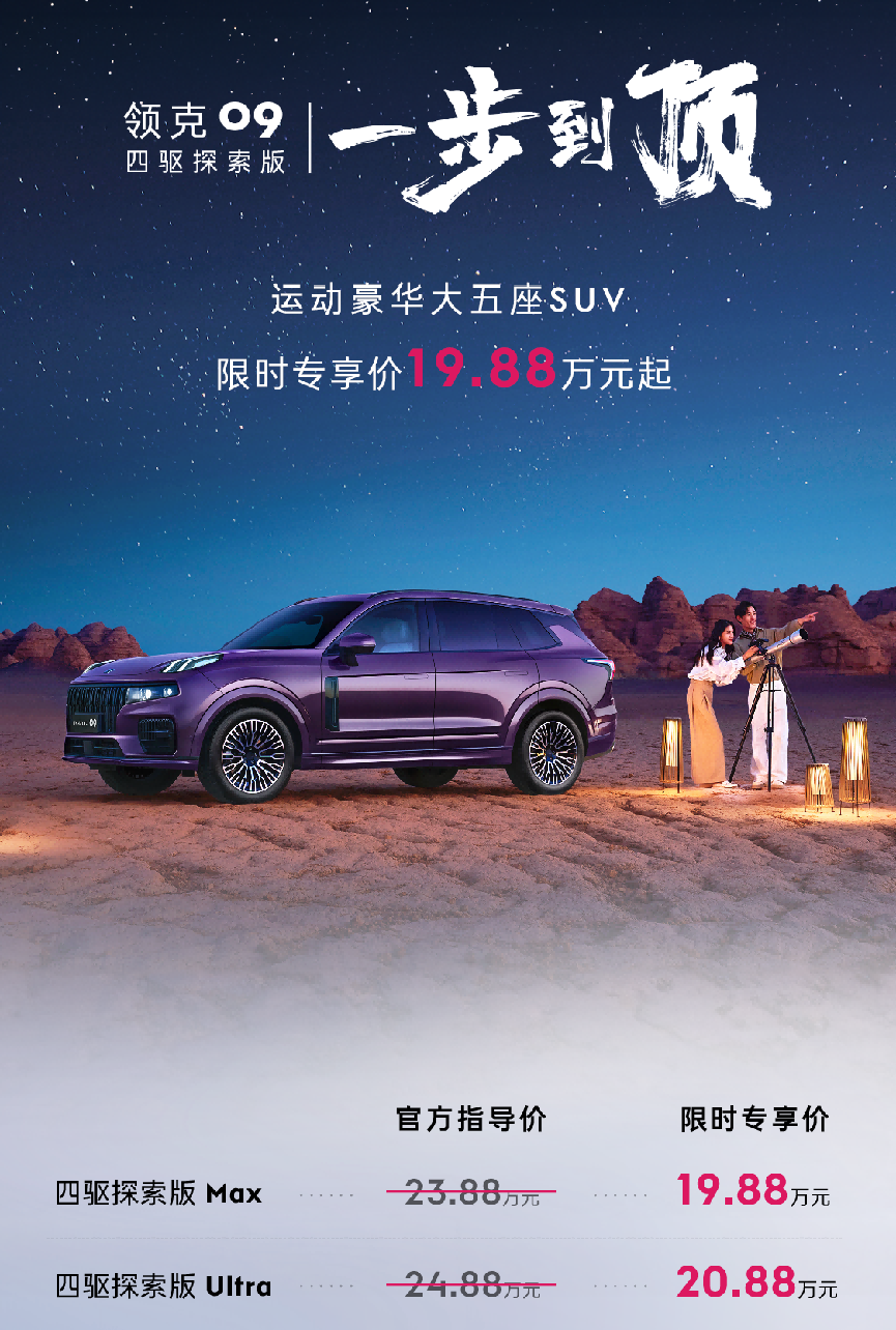 目前,新车提供了限时专享价19.88万元起,在30万内别中大型SUV市场,凭借其全时四驱系统、行政级第二排体验以及SPA平台赋予的安全基因,形成了独特的竞争力。倘若你正在寻觅一位能够从容应对从商务通勤到野外探索多种场景,既提供驾驶乐趣又保证乘坐品质的伙伴,那么这款逆流而上的领克09四驱探索版,无疑值得你亲身体验。
