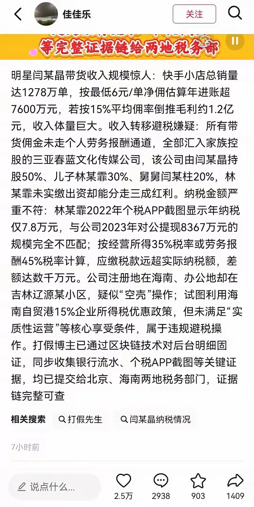 这位网友举报闫学晶偷税漏税事件,可谓是有理有据,现在的情况就是证据摆在面前,相关部门愿不愿意查,敢不敢去查,只要去查,肯定会有问题,这种压力给到了海南税务局。