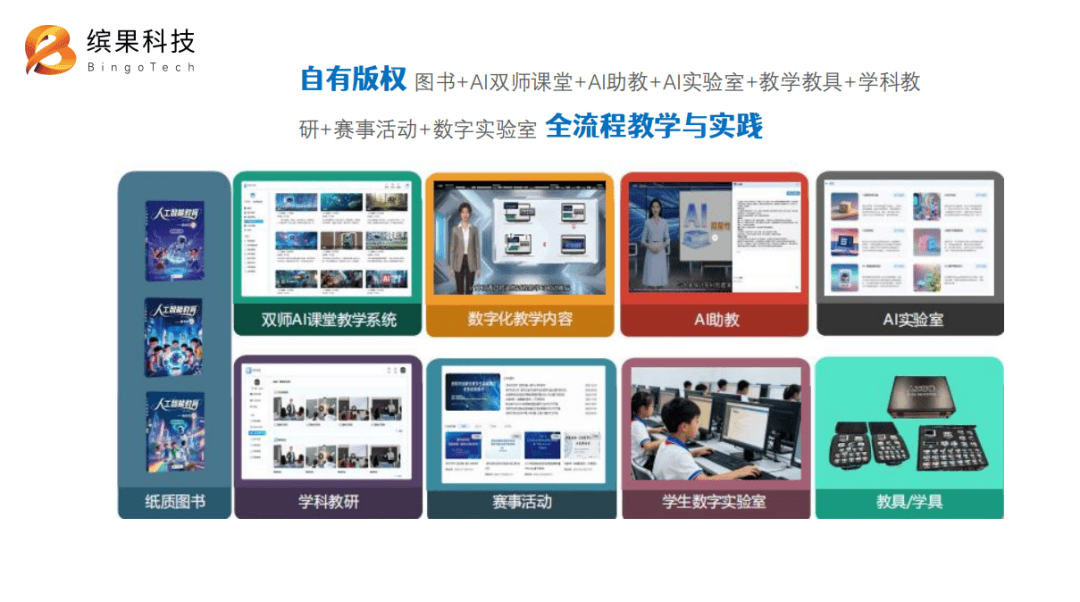此次入选权威案例课例的《AI大模型驱动下K12教育创新与变革》,正是缤果科技实践成果的浓缩体现。依托“云-边-端”全栈技术能力,我们打造了符合国家标准的AI通识课程体系,以“九星四阶”培养框架,从AI认知、思维、技能到价值观全方位培育学生科学素养;通过AI双师平台、虚拟实验室与编程评测引擎,构建“线上学习-虚拟实验-线下实操”全流程教学闭环,有效降低师资门槛;独创“以赛促学、以学强能、以能育人”模式,对接教育部白名单赛事与国际竞赛资源,为学生搭建能力展示与升学发展的清晰路径。