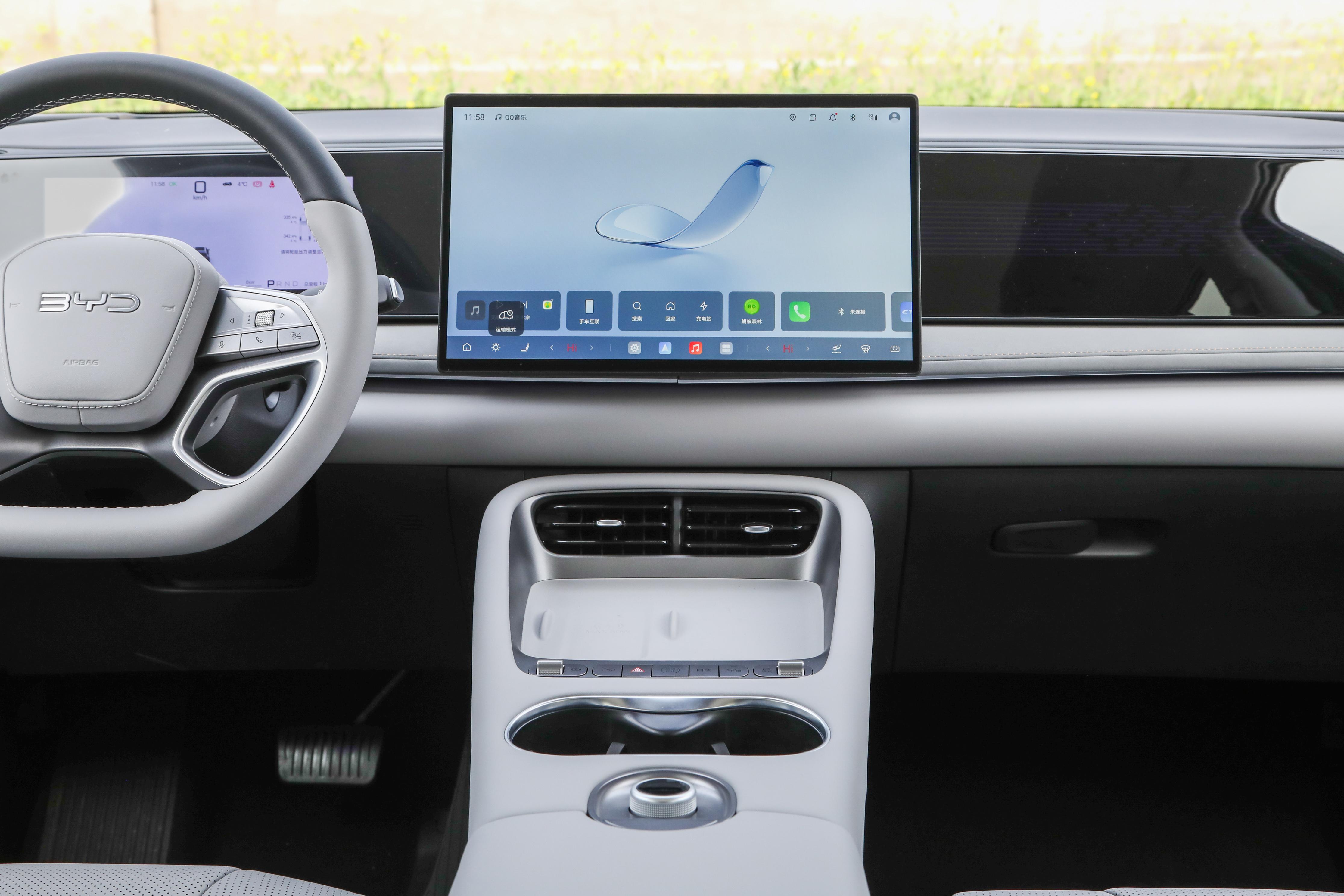 智能座舱方面,部分搭载DiLink 100智能网联系统,搭配10.25 英寸全液晶仪表 + 15.6 英寸自适应旋转悬浮 Pad,屏幕显示清晰、反应流畅,刷视频、导航、K 歌都不卡顿。核心升级是四音区语音交互,不用喊 “你好小迪”,主驾、副驾、后排都能直接语音控制,“打开空调”“调大音量”“导航回家”,一句话就能搞定,识别精准、响应迅速。同时新增了车外喊话、小憩模式、宠物模式等实用功能:临时停车有人挡路,车外喊话直接提醒;累了想休息,一键开启小憩模式,座椅自动放倒、空调调至舒适温度、氛围灯柔和亮起;带宠物出门,宠物模式能保持车内通风恒温,细节拉满。另外50W 无线快充、220V 对外放电、全车30处储物空间,不管是日常通勤还是户外出行,智能体验全程在线。