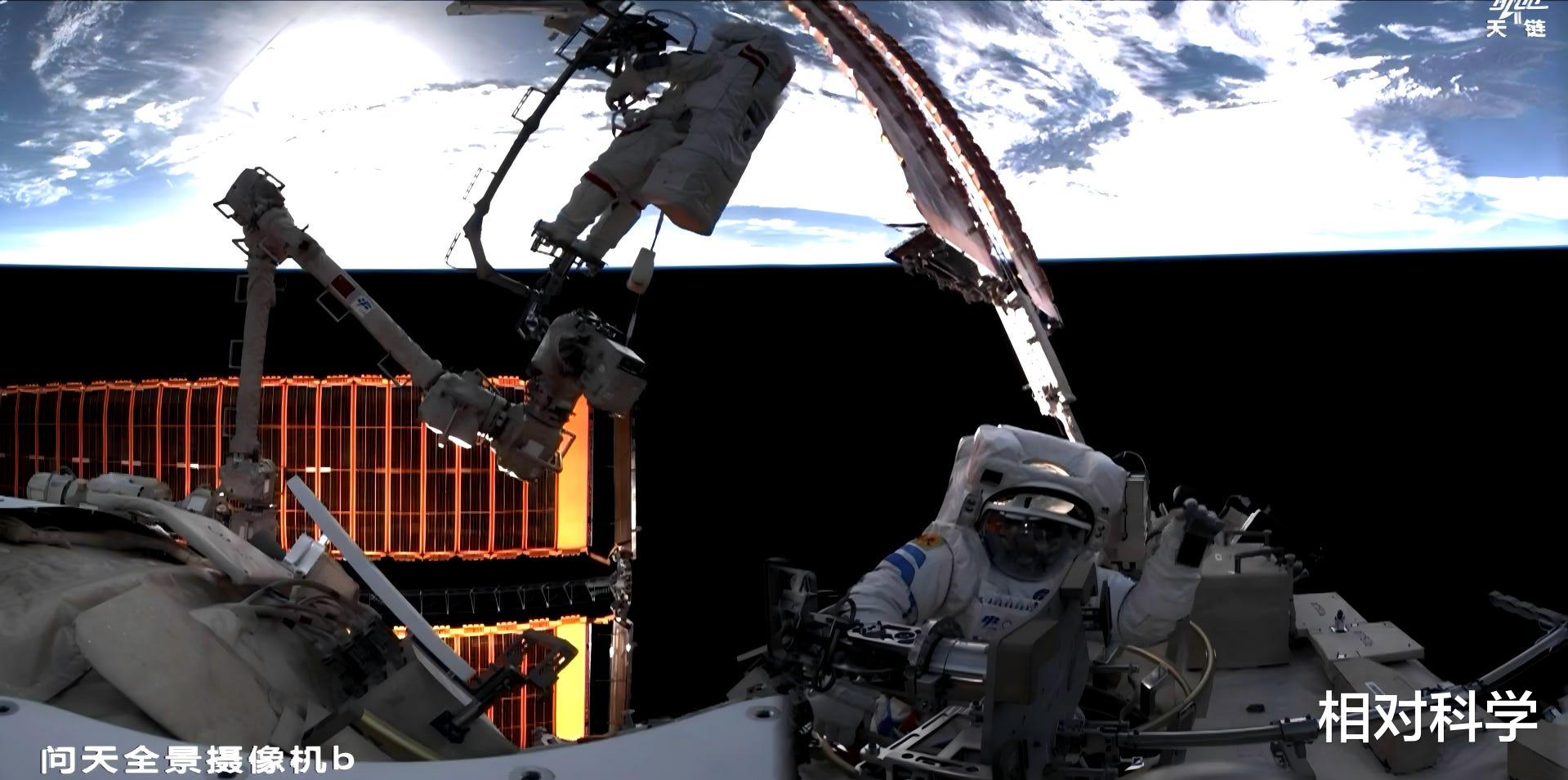 无独有偶,中国空间站在太空中飞行时也会面临太空碎片撞击的风险,空间站太阳翼曾多次遭受微小太空碎片的撞击,需要航天员出舱进行在轨维修。对于较大的太空碎片,我国有能力提前做好监测,通过及时调整轨道来躲避它们的撞击。另外,我国航天员还多次出舱,给空间站安装空间碎片防护装置,进一步提升空间站的安全。