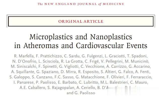 2024年3月7日,意大利坎帕尼亚大学的研究人员在《新英格兰医学杂志》上发表了一篇题为" Microplastics and Nanoplastics in Atheromas and Cardiovascular Events "的研究论文。