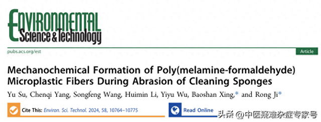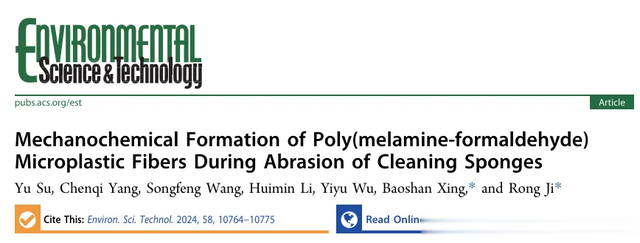 近日,南京大学、东南大学等研究人员在《环境科学与技术》期刊上发表了一篇题为" Mechanochemical Formation of Poly(melamine-formaldehyde) Microplastic Fibers During Abrasion of Cleaning Sponges "的研究论文。