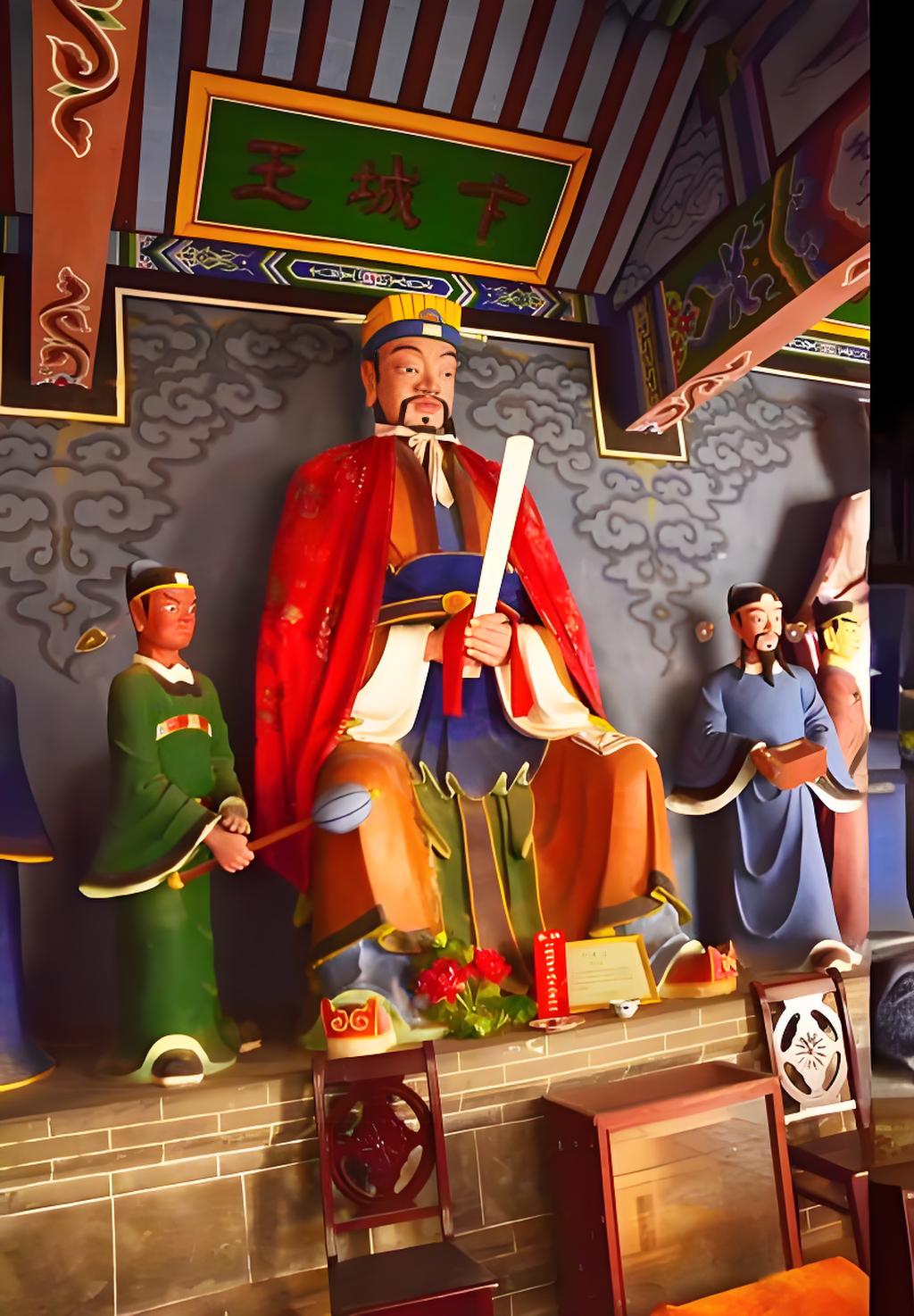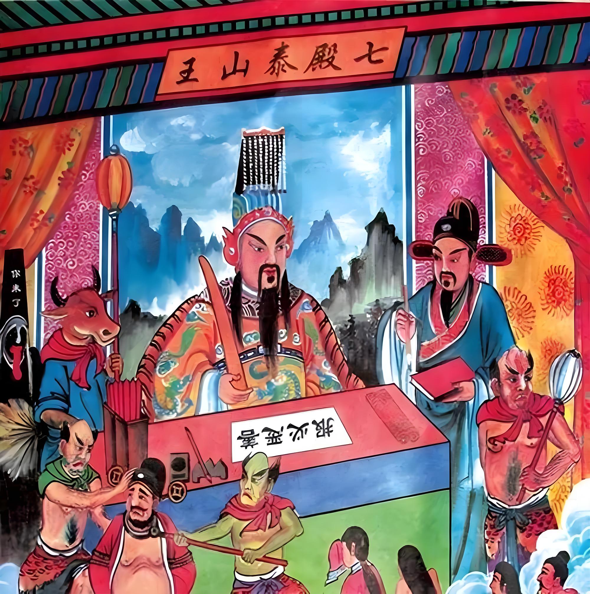 第七殿泰山王董和,字幼宰,出生于南郡枝江县(现属湖北),是东汉末年至三国时期的人物,诞辰农历三月二十七日。泰山王的形象通常为扁鼻凹脸,头戴方冠,双手怀中持笏。历史上曾是刘备的手下官员,后来在刘璋手下任职,担任过牛鞞、江原县长及成都县令等职务,以清廉公正、勤政爱民著称。