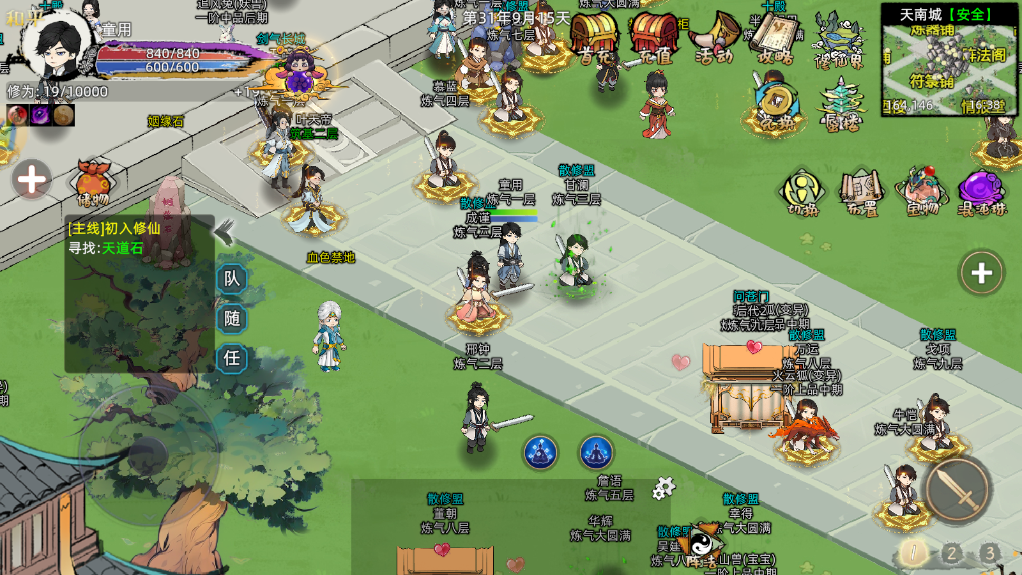 融合硬核修仙与休闲模拟的策略类游戏,无强制任务流程,玩家可自由操控家族成员,安排探险、采矿、修炼等事宜,采用上帝视角全局把控家族发展,兼顾资源管理与战术布局。战斗系统引入地形利用机制,弟子功法可主动释放,策略性拉满。