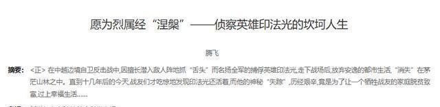 最终,对越自卫反击战凯旋而归,仗打完了,印法光自个儿提出想退伍回家。尽管部队领导多次劝他留下,但印法光心意已决,这一走,好多年都像是没了踪影似的。