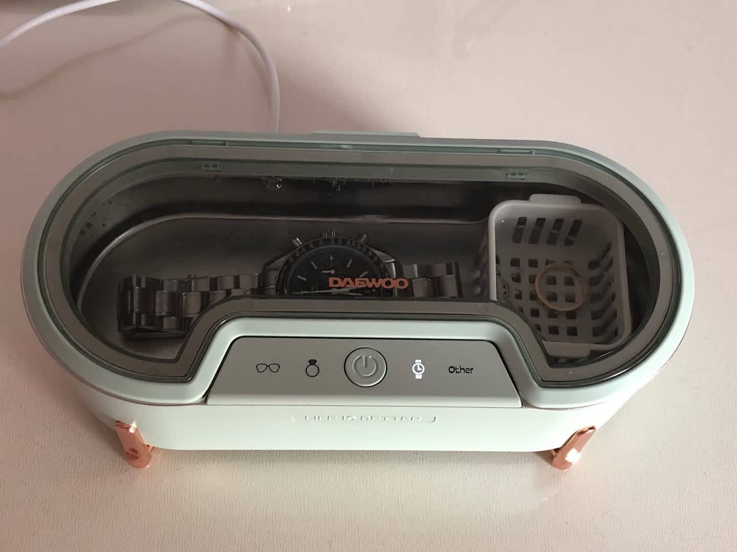 在清洁能力上,搭载35W额定功率,可以提供45000hz的超声波振频,通过高频振动,水分子在声压下膨胀爆破,可以深入物件缝隙,带走缝隙中藏纳的灰尘油脂!还设有5个不同档位的清洗模式,不仅能清洗眼镜,还可以清洗首饰、手表、剃须刀等。它拥有650ml大清洗槽,一吃可容纳多件物件清洗;还采用304不锈钢材质,相比其他塑料材质,更耐磨耐腐蚀!但比起其他中低档价位的机子,这款机子价格偏高,对于喜欢可爱元素、不考虑性价比,需要一次清洗多件物品或大物的家庭可以入手体验!