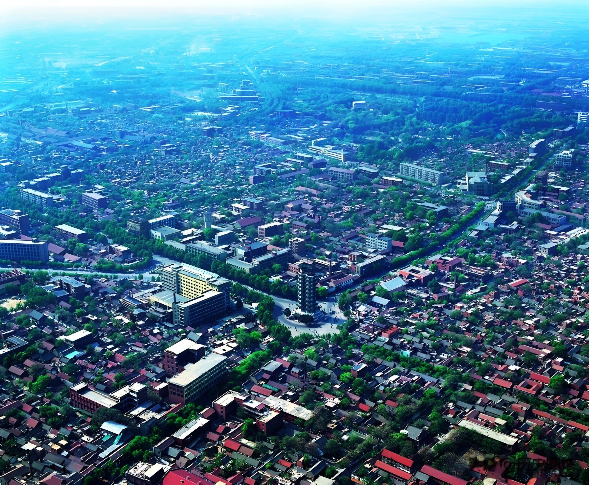 1、80年代郑州都说郑州是火车拉来的城市,认为是个很年轻的城市。实际上商都郑州历史也很悠久。照片中是航拍角度下的郑州,高楼大厦还没有出现,二七纪念塔是当时郑州的地标性建筑。
