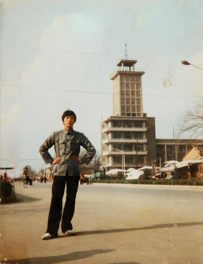 16、80年代周口一名年轻男子,站在公路边。在他身后不远处,是周口邮电大楼。大楼始建于1972年,是当时周口最高的建筑。