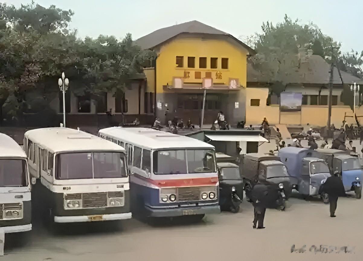 10、80年代许昌80年代许昌火车站,始建于1904年,橘黄色的建筑古色古香。站前广场停着不少公共汽车和三轮摩托车。