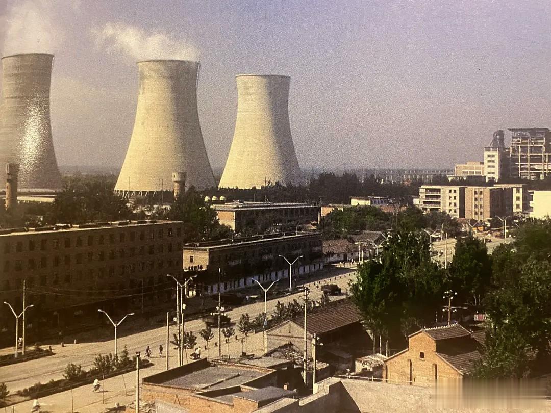 5、80年代焦作照片中几个高大的冷却塔,位于焦作电厂内,正冒着白色的水蒸气。焦作电厂历史有机库,是中国近代最早的发电厂之一,始建于1919年。