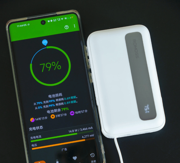 这款充电宝支持15W的充电功率,给苹果手机充电时速度表现不错,能在较短的时间内为设备补充电量。