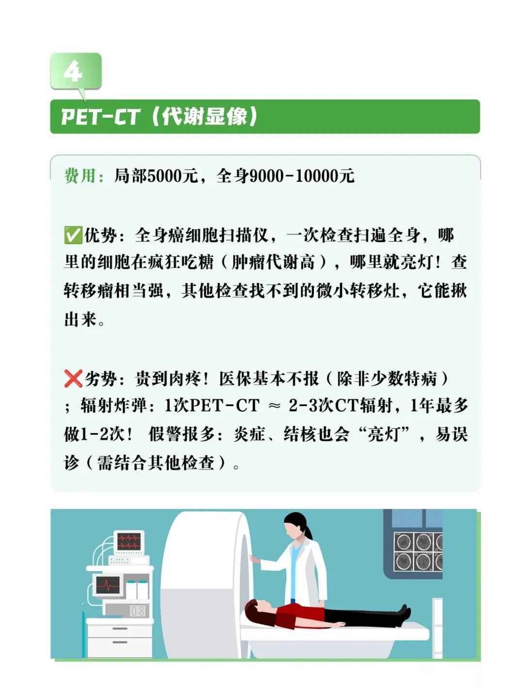 ❌劣势:贵到肉疼!医保基本不报(除非少数特病);辐射炸弹:1次PET-CT ≈ 2-3次CT辐射,1年最多做1-2次! 假警报多:炎症、结核也会“亮灯”,易误诊(需结合其他检查)。