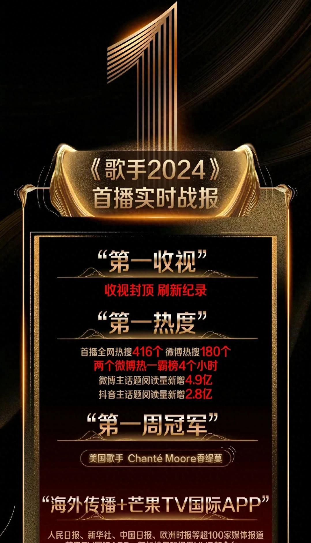 从数据来看,《歌手2024》首播的收视率达到了惊人的2.8%,市场份额超过15%,远超同期其他综艺节目。微博话题阅读量超过50亿,讨论量超过1000万。这些数据都足以证明节目的火爆程度。