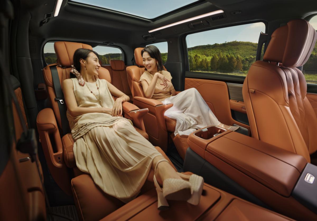 既然价格拉上来了,那用料跟配置就可以放心给到了。首先尺寸方面这台车接近5米3,不算特别长,但是3160mm的轴距确实够大。礼宾空悬,开车门的时候自动降低车身,手势控制的侧滑门,让这台车在上车之前就有足够的仪式感。