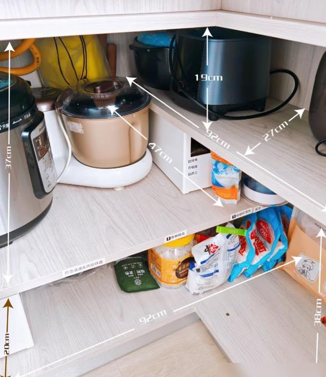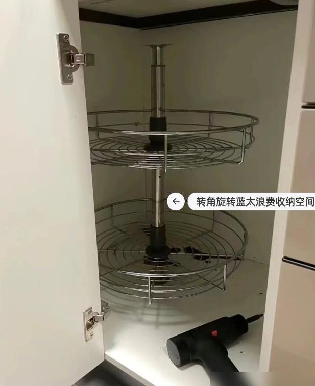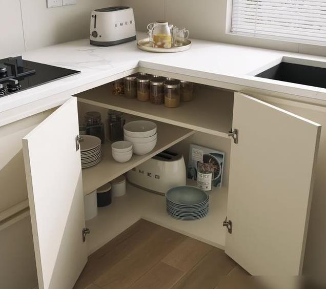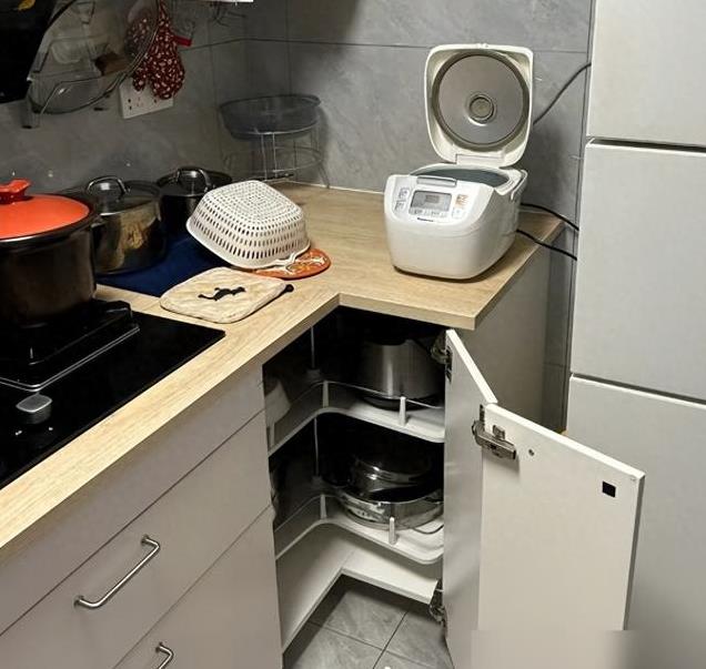 但橱柜的设计会影响厨房的体验度, 比如厨房的转角处,如果使用效果差的旋转架,使用起来不方便,就会影响储存物品的便捷度,且会留下使用习惯不好的问题。