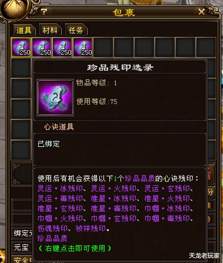 各位老铁,今天在无限元宝测试服【世外龙园】强测了一下珍品残印选印的几率。