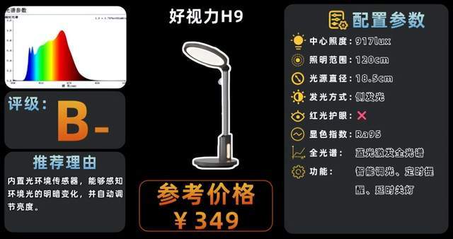 代表型号:好视力H9护眼台灯