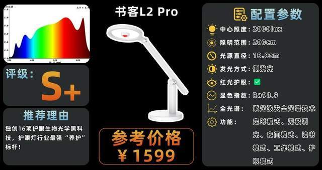 代表型号:书客护眼台灯L2 Pro