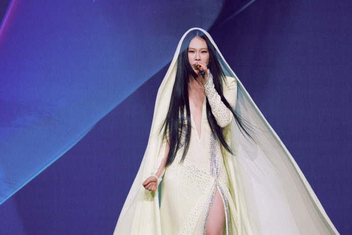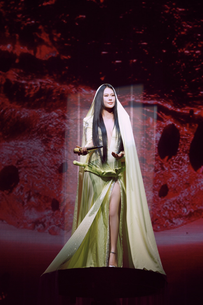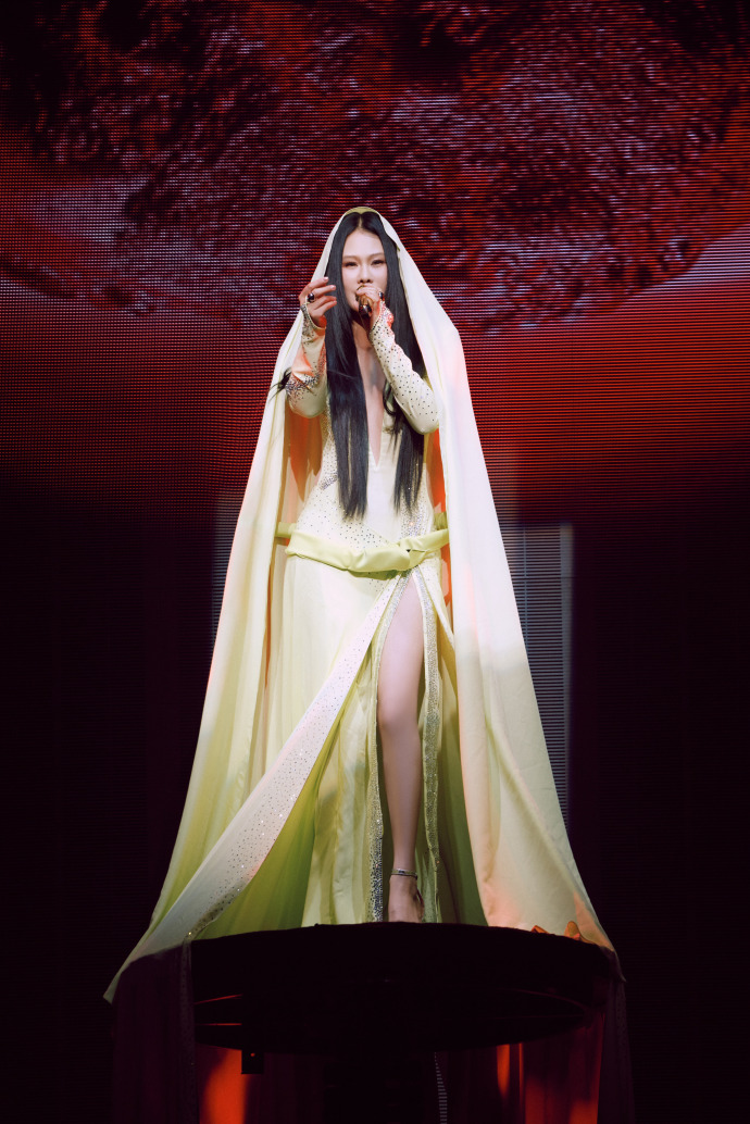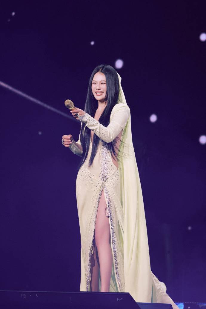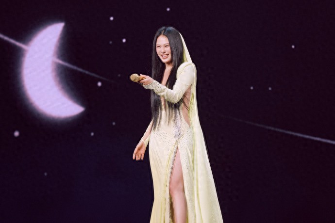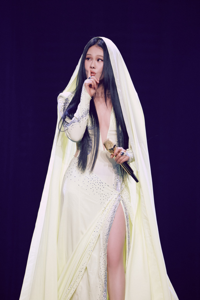 袁娅维演唱会穿着开叉长裙,不经意间露出的长腿真迷人
