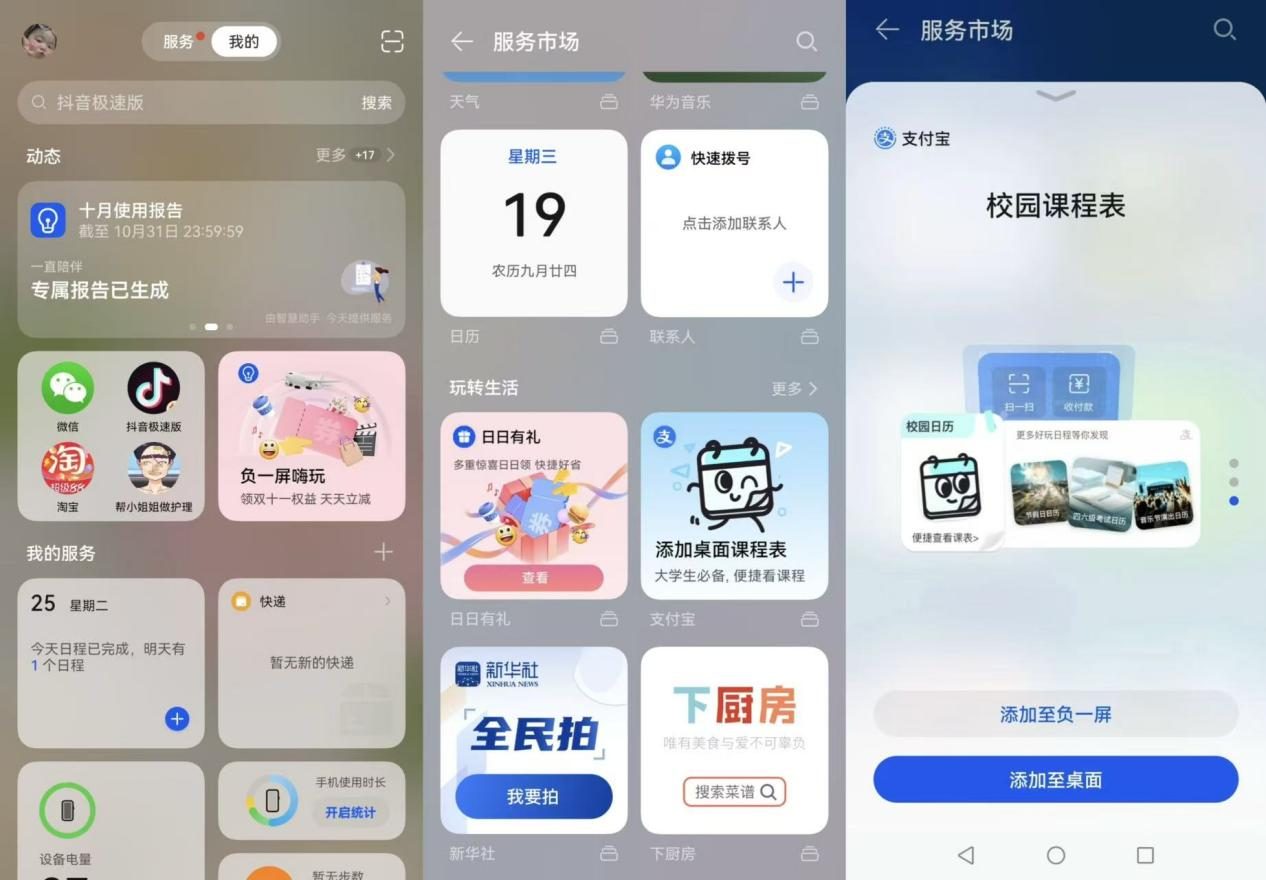 华为负一屏上新“支付宝校园课程表”卡片,便捷添卡助力高效校园生活