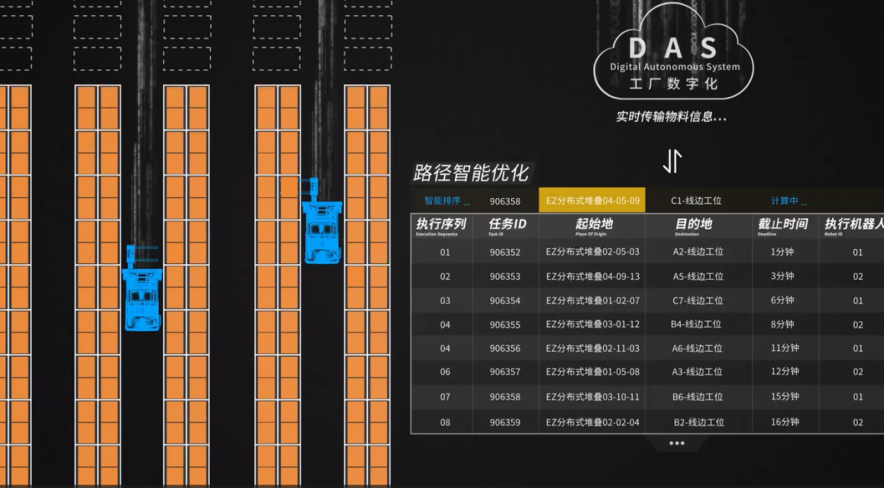 DAS工厂数字化可基于货物时效、运输距离、机器人实时位置等多维度数据,通过智能算法实时生成最优搬运路径,自动规划最佳库区、最优储位及最精益的物流时间。以生产型企业为例,系统能精准匹配生产节拍,优先调度临近生产线的物料,实现“先进先出、快速供料”,将仓储响应效率提升40%;在电商大促场景中,系统可根据订单热度动态调整货位,让高频出库货物靠近分拣区,缩短搬运距离,助力订单快速履约。这种“硬件执行+软件决策”的数智闭环,正是中力“数智新仓”的核心内涵。