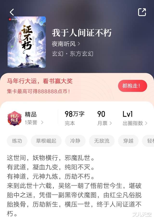 夜南听风的这本玄幻小说百万字之前完结了,相比于上本的《大宣武圣》万订写了三百万字,这本成绩差了不少,均订看着只是在三千精品线上。