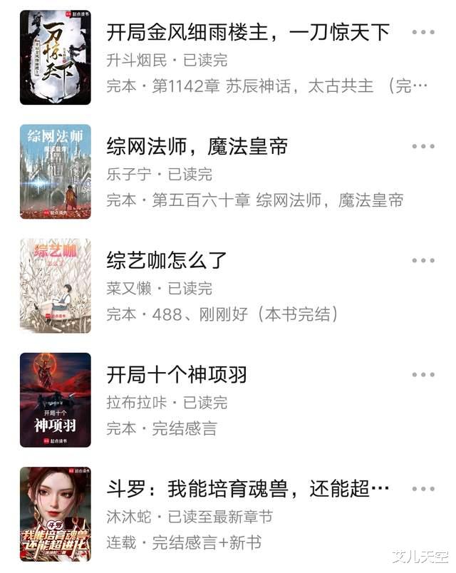 另外除了上面两本小说,升斗烟民的金风细雨楼主、乐子宁的《综网法师,魔法皇帝》、沐沐蛇的斗罗同人等作品也都陆续完结了。