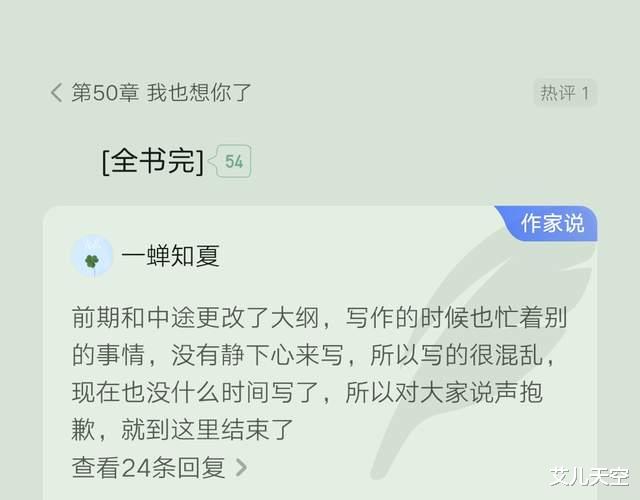 这次结束也是类似于腰斩式完结,看他总结,改过两次大纲,中间事情又比较多,没办法静下心来认真创作,最终选择提前结束,小说看着在五千均以上。