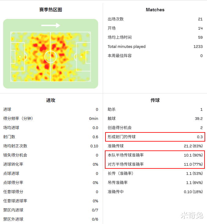 关键是他场均能赢下4.5次一对一对抗,对抗成功率是49%,通过快速的移动和对抗压迫,他还是很合适跟维塔尔、梅伦多搭档中场,前提就是维塔尔要比本赛季更多回撤持球主导推进。