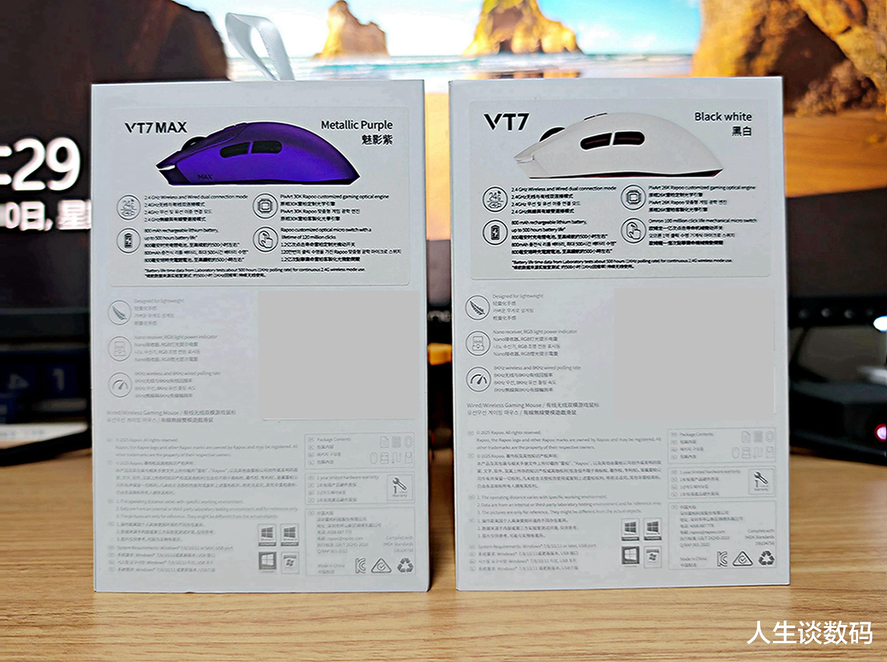 最近,我深度体验了雷柏VT7和VT7 MAX这两款鼠标,现在就为大家分享一下真实感受。雷柏VT7系列鼠标的外观设计十分用心。两款鼠标包装精致,内部除了鼠标、说明书外,还赠送了备用防滑贴、数据线、USB转接器。