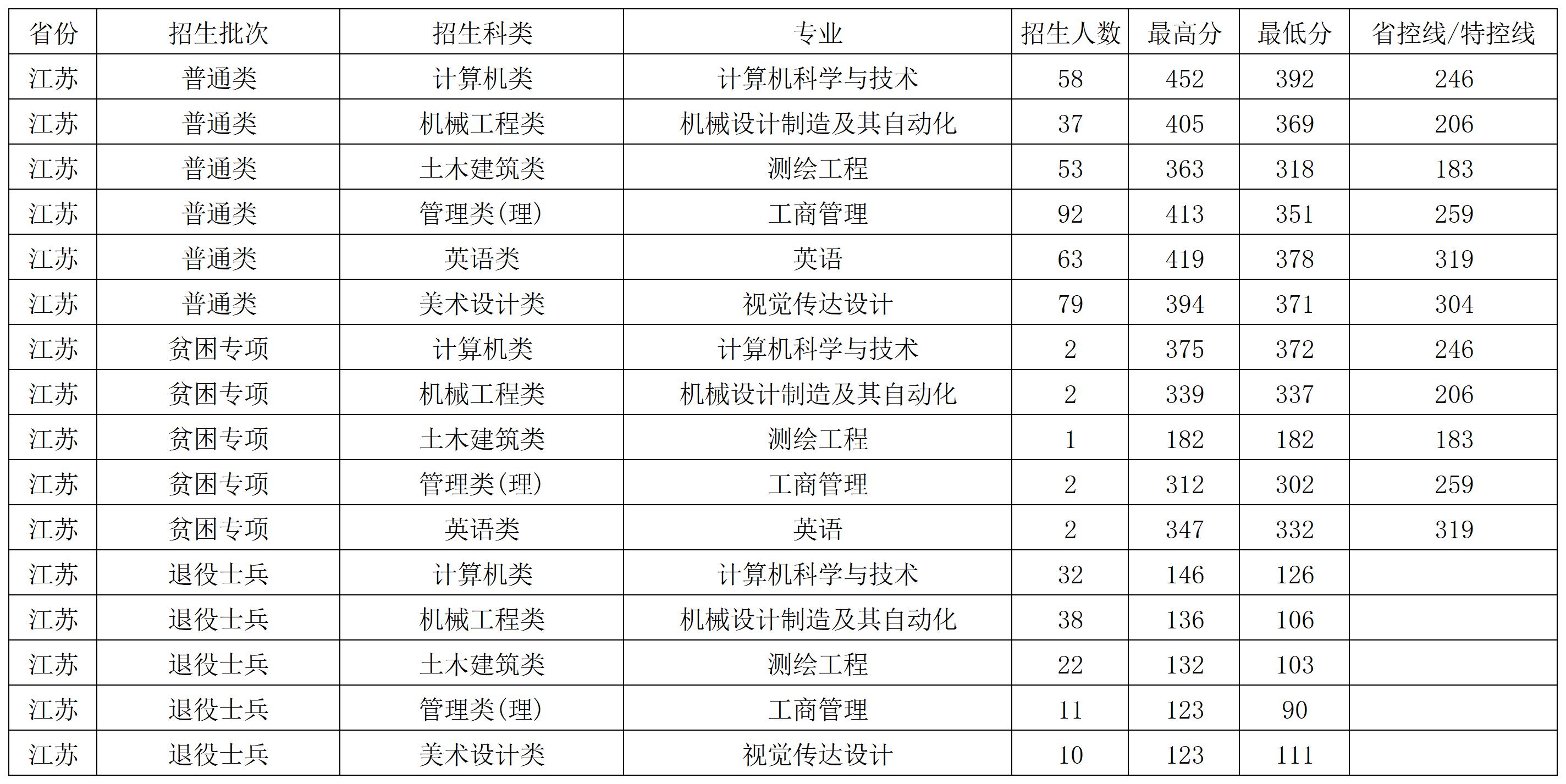 苏州科技大学2025年在江苏专升本各专业录取分数线