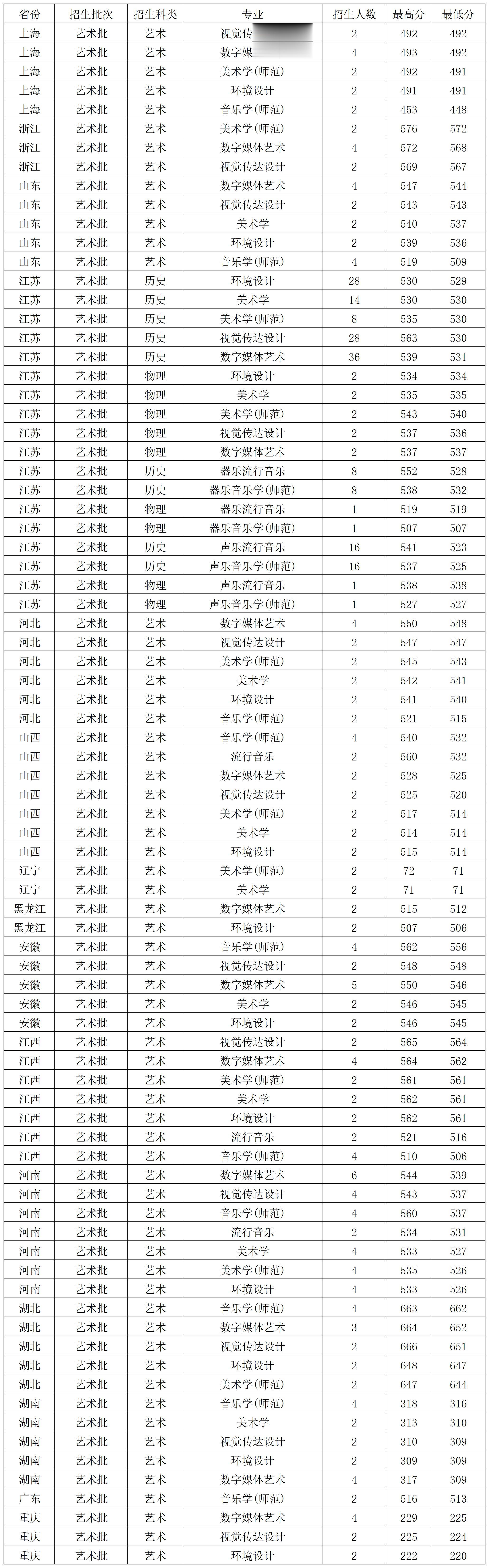 苏州科技大学2025年艺术类在各省各专业录取分数线