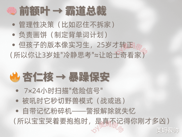 上头时,理性很容易被杏仁核劫持,我们会不由自主地把声音拔高。这时娃早被你吓到了,根本听不进道理。唯有深呼吸,刻意把声音压低,给杏仁核来个急刹车,理智才能重新上线。