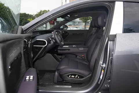 底盘与操控方面,该车采用前双叉臂式独立悬挂和后多连杆式独立悬挂的组合,悬挂调校兼顾舒适性与运动性。标配空气悬挂和魔毯智能悬挂,空气悬挂支持软硬 + 高低调节,能根据不同路况和驾驶模式自动调整悬挂状态,在颠簸路面行驶时,悬挂能有效过滤震动,保持车身稳定;在高速行驶时,悬挂可降低车身高度,提升行驶稳定性和燃油经济性。电动助力转向系统手感轻盈,转向精准,最小转弯半径仅为 3.2m,在狭窄路段掉头或泊车时更加灵活便捷。制动系统采用前后通风盘式制动器,配合电子驻车功能,制动效果稳定可靠,制动能量回收系统可根据驾驶习惯调节回收强度,在提升续航的同时,也能带来更平顺的驾驶体验。驾驶模式选择丰富,包括运动、个性化、ECO / 经济和标准舒适四种模式,不同模式下动力输出、悬挂硬度和转向手感会有所不同,满足不同驾驶者的驾驶需求。