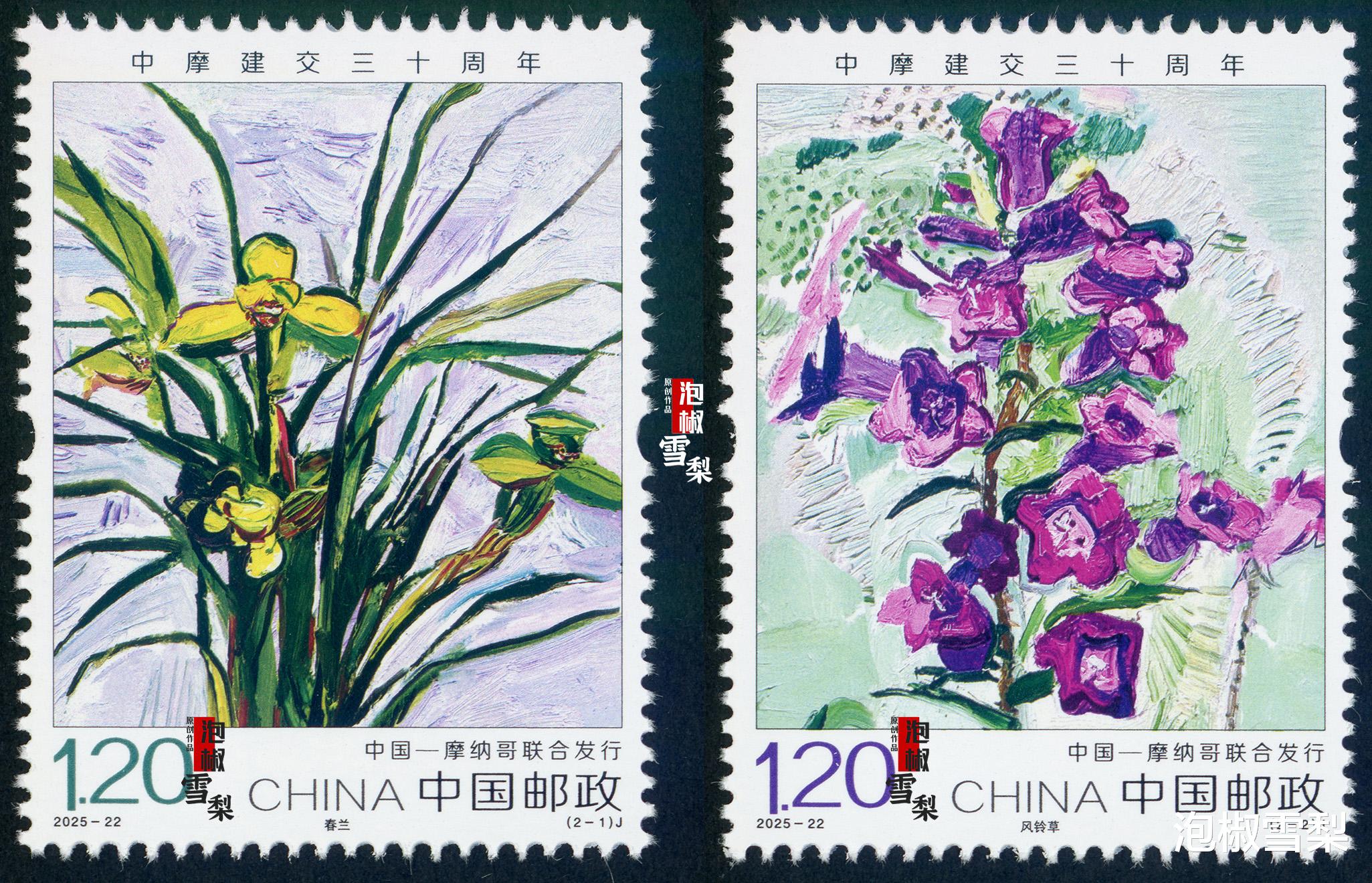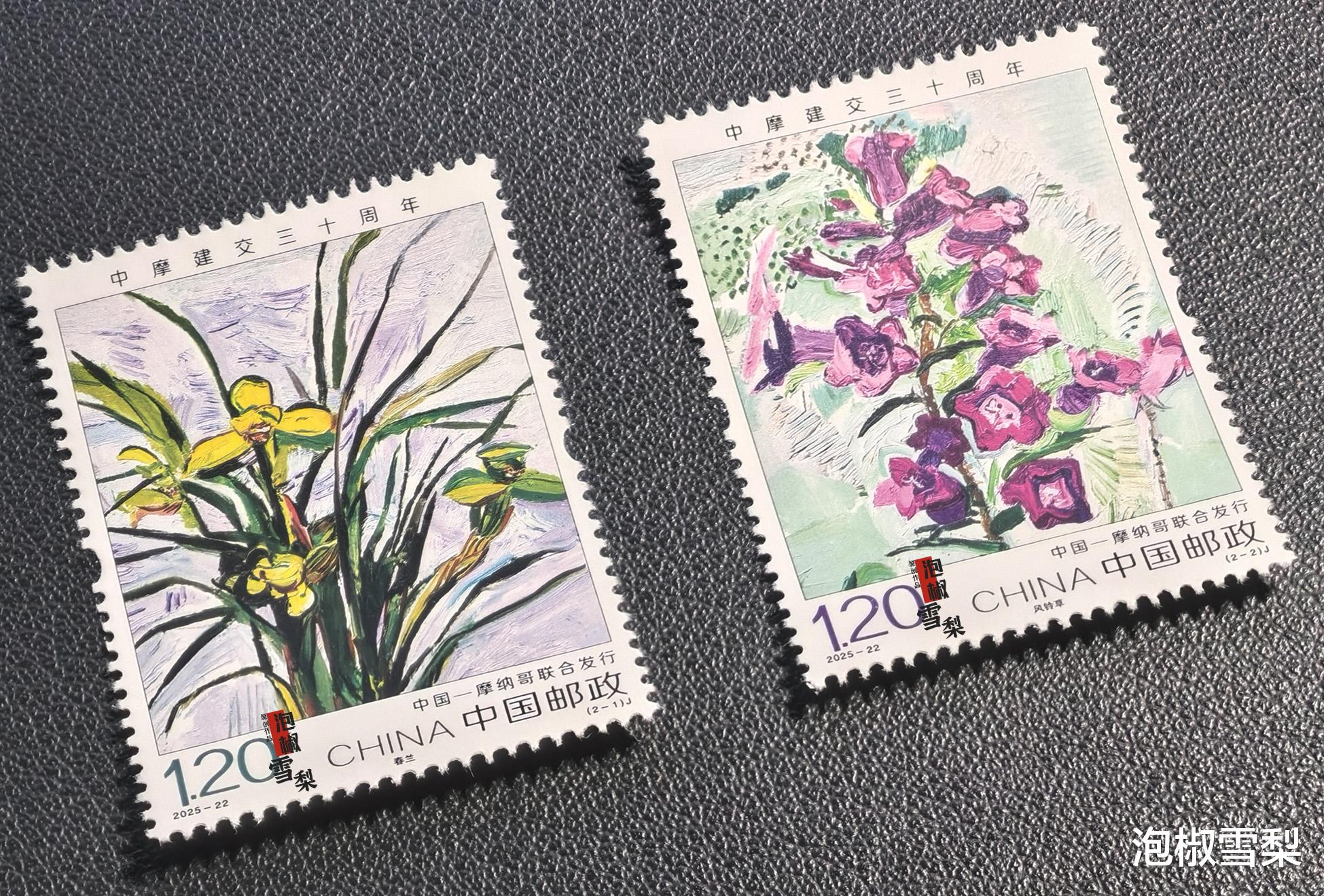 2025年10月15日,中国邮政发行《中摩建交三十周年》邮票1套2枚,北京邮票厂胶版印刷,设计者闫平,计划发行量450万套,总面值1080万元。