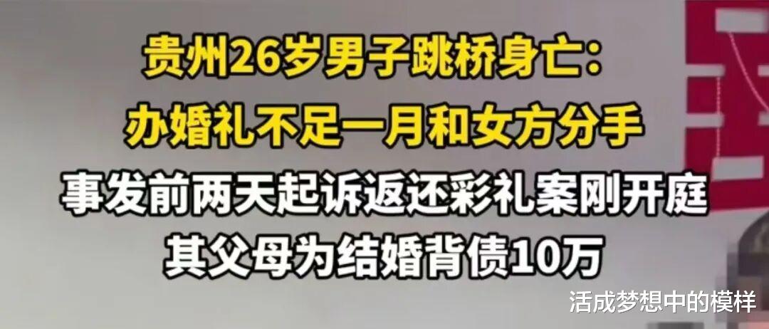 所以这个事件里的男方,这种婚也结,出这种事也就不意外了。彩礼是自己给的,钱是自己借的,河是自己跳得,这就是认知跟不上时代和版本造成的悲剧,也是社会留给我们的警示和教训。