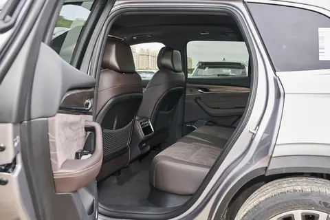 后排座椅表现也不错,支持 30° - 40° 的无级电动调节,不管是成年人还是小孩,都能快速找到舒适的坐姿。后排空间比较宽敞,我身高 180cm,坐在后排,腿部还有两拳多的距离,头部也有一拳多的空间,不会觉得拥挤。有时候带父母和孩子出门,三个人坐在后排,都能坐得舒服,没有压抑感。