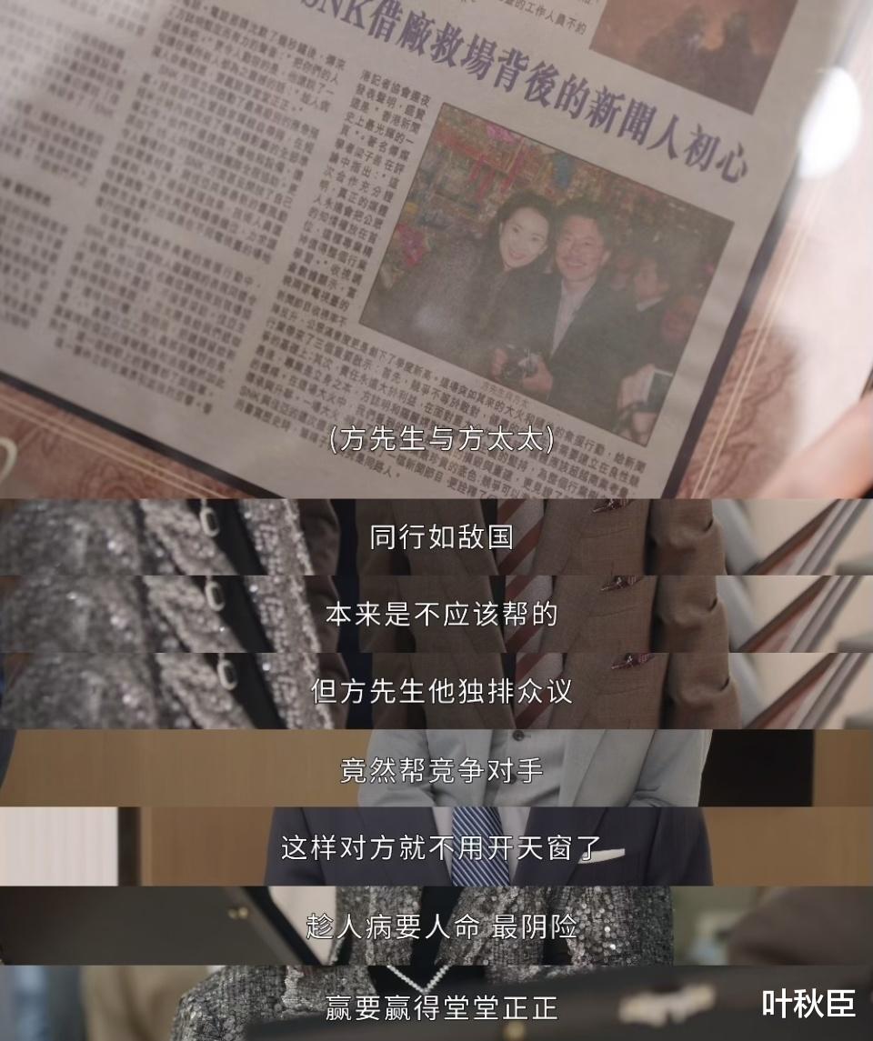 古肇华的加入,让剧情内容不仅仅只是停留在新闻层面,还引进了商战的味道,大家权衡利弊各自取舍,而非普通的二选一抉择而已,这也是TVB擅长拍的东西。